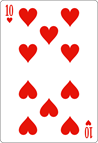 Sur le plan sentimental le dix de coeur est trés bénéfique et se fait l 'annonce d 'une union vouée à la réussite et au bonheur sans la moindre ombre au tableau. Dans le contexte de la cartomancie, le 10 de cœur est souvent associé à des significations positives, en lien avec les émotions, les relations et la joie.