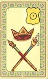 La lame des "honneurs" de l'oracle Belline comporte 3 éléments : une couronne à 3 branches ainsi qu'un bâton de commandement entrecroisé d'un bâton de justice. Placée sous le signe du Soleil cette carte est très bénéfique et symbolise la considération, le respect, la gloire.