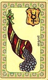 La lame de "l'argent" de l'oracle Belline comporte 1 élément : la corne d'abondance. Placée sous le signe de Mercure, elle symbolise le commerce, les affaires. C'est une carte bénéfique pour tout ce qui a trait à l'emploi, aux ambitions et aux promotions.
