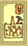 La lame des "entreprises" de l'oracle Belline comporte 3 éléments : un parchemin avec pour illustrations un bâtiment, une équerre et un compas. Placée sous le signe de Mercure, cette lame symbolise la concrétisation d'un édifice, d'un projet, la réalisation, la perfection.