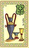La lame "la table" de l'oracle Belline comporte 3 éléments : une amphore, une coupe et un calice. Placée sous le signe de Vénus elle symbolise la connaissance, l'amour sensuel, l'alliance, le partage, l'accord parfait